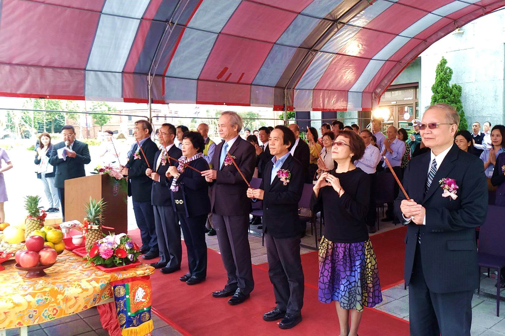 中華民國 ○○○年○○月○○日吉時,舉行...新建工程開工動土奠基典禮。主獻者...率全體董事暨陪典人員,敬備牲果之儀,焚香叩拜,虔誠恭請天地諸神、土地公、地基主、好朋友等眾神祇,降福領受。祈求保佑,工地人員平安,工程進行順利圓滿。